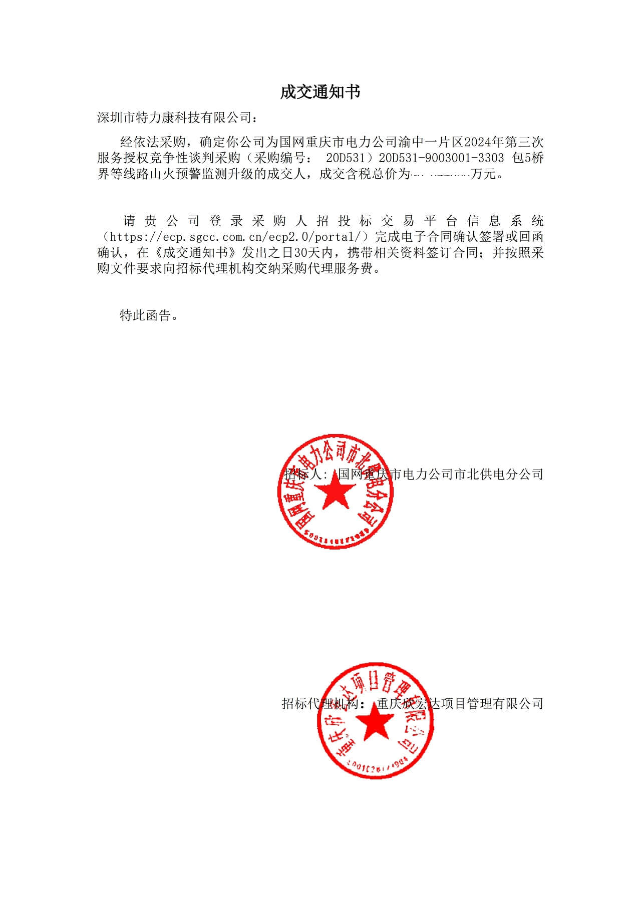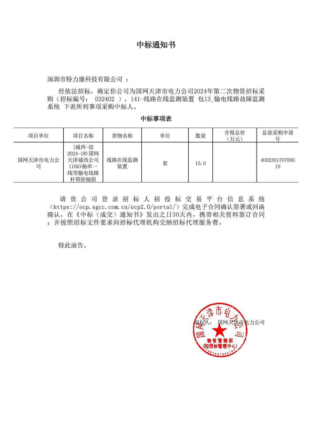 特力康中標(biāo)國網(wǎng)黑龍江送變電工程公司的2024年度第18次物資類競爭性談判采購項(xiàng)目——慶陽驅(qū)鳥器物資框 特力康中標(biāo)國網(wǎng)甘肅省電力公司省管產(chǎn)業(yè)單位2024年第五次物資競爭性談判授權(quán)采購項(xiàng)目 中標(biāo)喜訊:深圳市特力康科技有限公司成功入圍許繼集團(tuán)綜合能源公司輸電線路視頻在線監(jiān)測裝置模塊集采項(xiàng)目 中標(biāo)喜訊:特力康成功中標(biāo)國網(wǎng)重慶市電力公司渝中一片區(qū)項(xiàng)目 特力康成功中標(biāo)國網(wǎng)天津市電力公司2024年第二次?物?資招標(biāo)項(xiàng)目 特力康中標(biāo)國網(wǎng)安徽省電力有限公司蕪湖供電公司2024年3月非物質(zhì)采購項(xiàng)目 蜀道巡線不用“爬”:特力康視頻在線監(jiān)測裝置守護(hù)四川輸電鐵塔 風(fēng)雪中的 “防冰哨兵”:內(nèi)蒙古電力用特力康監(jiān)測系統(tǒng)筑牢覆冰防線 雙軸感知護(hù)塔穩(wěn):山西電力用特力康裝置破解采空區(qū)傾斜難題 江西電力裝上 “智能防鳥衛(wèi)士”—— 特力康綜合激光驅(qū)鳥器破解湖區(qū)變電站鳥害難題 破解巡檢難題:貴州電力用特力康 AI 微拍裝置,精準(zhǔn)捕捉線路隱性隱患 精準(zhǔn)捕捉 “微氣象”:浙江電力用特力康預(yù)警系統(tǒng)筑牢電網(wǎng)氣候防線 守護(hù) “電力咽喉”:湖南電力投用百套特力康三跨 4G 監(jiān)控球,筑牢安全防線 貴州電力裝特力康電網(wǎng)架空線路覆冰監(jiān)測系統(tǒng),精準(zhǔn)防冰保電網(wǎng)過冬? 寧夏配電線路安裝了我司防外破電子化智能警示牌